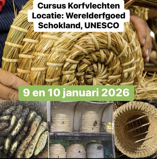 Onder begeleiding van Rob Triest – bekend als de vlechtende imker van De Schokkerbij – leer je de traditionele vlechttechnieken. Je kiest zelf wat je maakt: een bijenkorf, een mand of een schaal.